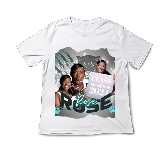 Celebrate graduation season in style with our custom 3D partial print t-shirt! Featuring custom colors, mascot, and year, along with graduate pictures in an affordable partial coverage on the front of the shirt. Stand out from the crowd and show off your accomplishments with this unique and personalized t-shirt. Design is just an example. Any colors, accents, mascots can be incorporated.